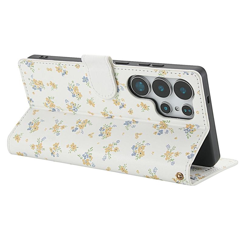 Rhombic Floral Wallet Case for Samsung Galaxy S26 Ultra - with Strap and Card Slots