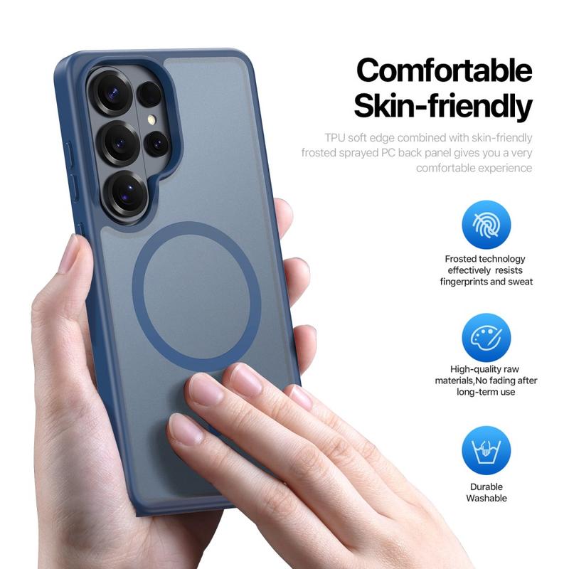 Protect your Samsung Galaxy S26 Ultra with a sleek matte cover that clicks straight onto MagSafe chargers and accessories. The Yind Series pairs a scratch-resistant PC backplate with shock-absorbing TPU edges and a precision-aligned magnetic ring, delivering cable-free power and all-round drop protection without bulky pockets.