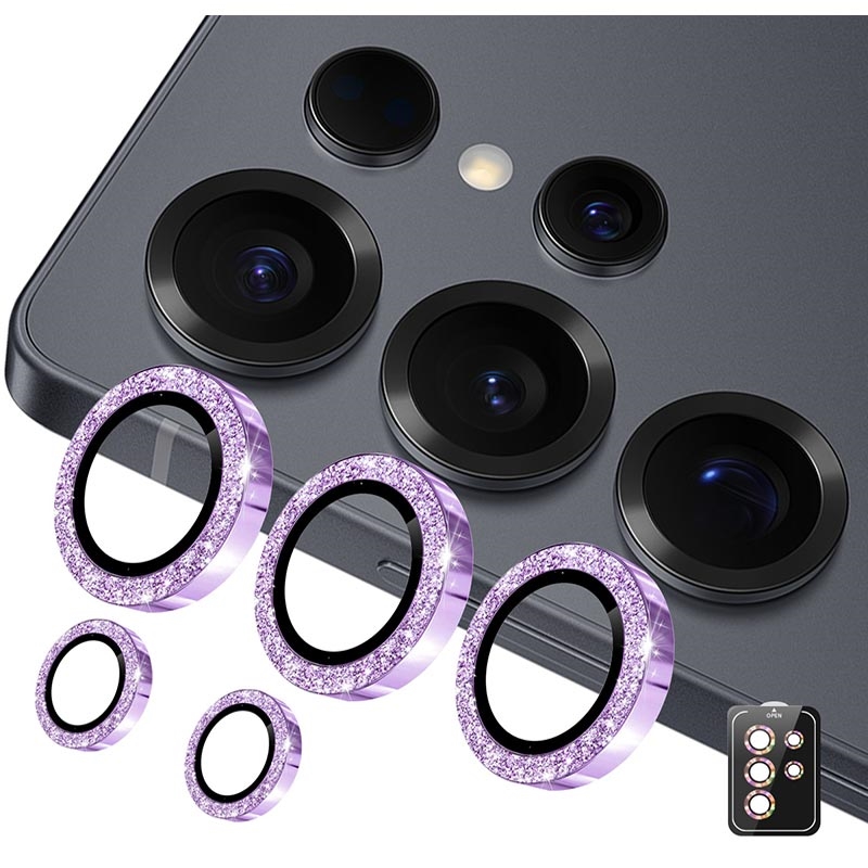 This camera protector is made of premium tempered glass with 9H hardness, placed under the durable aluminum alloy ring decorated with shiny rhinestones. It is precisely crafted to perfectly fit the camera lenses on your Samsung Galaxy S26 Ultra, with high transparency so that it won't affect the quality of captured images and videos.
