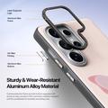 The camera protection frame and side buttons are made from aluminum alloy, precisely CNC-machined and finished with fine sandblasting. This ensures long-lasting colour, durability and a premium feel, enhanced with subtle laser-engraved details.