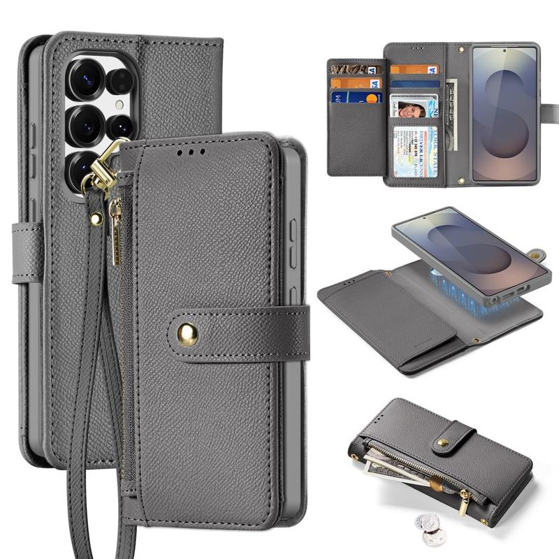 Upgrade your Samsung Galaxy S26 Ultra with the Dux Ducis Lawa Series Magnetic Case, a premium accessory that combines style and functionality. Made from genuine cowhide leather, this black case features a detachable zipper wallet, allowing you to store your essentials securely. The magnetic design ensures easy attachment and detachment, offering flexibility for daily use. With its sleek and durable construction, this case provides comprehensive protection for your device while maintaining a sophisticated look.