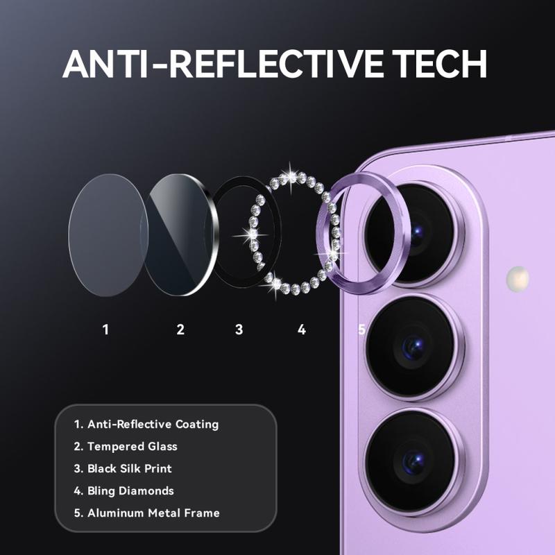 Add sparkle and protection to your Samsung Galaxy S26 with the NORTHJO Camera Lens Protector. Designed with shimmering rhinestones and precision-cut tempered glass, it keeps your camera lens safe from scratches, dust, and impact while adding a touch of elegance and luxury.