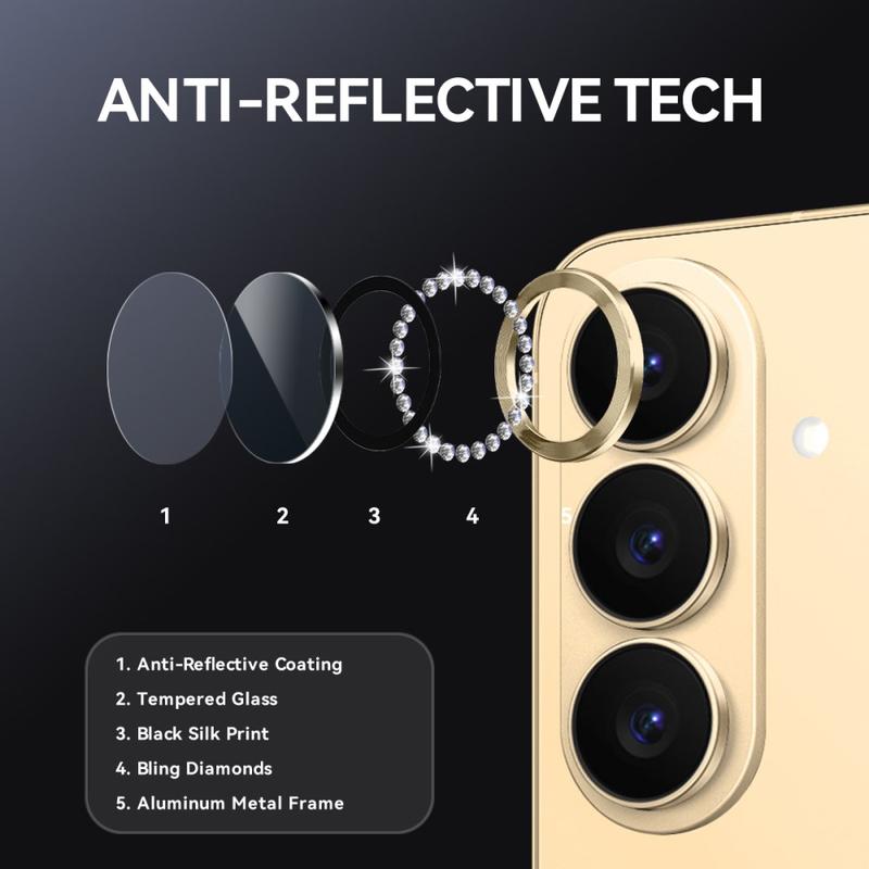 Add sparkle and protection to your Samsung Galaxy S26+ with the NORTHJO Camera Lens Protector. Designed with shimmering rhinestones and precision-cut tempered glass, it keeps your camera lens safe from scratches, dust, and impact while adding a touch of elegance and luxury.