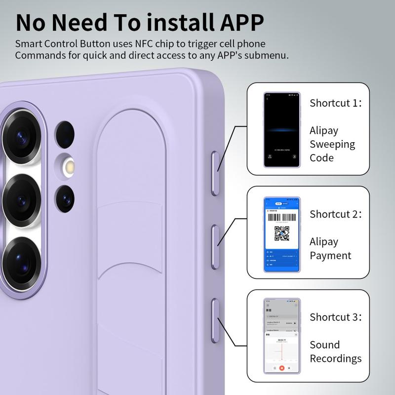 The amazing Smart Hybrid Case with Standing Grip is designed to give your Samsung Galaxy S26 Ultra more than just protection. It combines customizable NFC shortcut buttons, a secure grip strap, and a versatile kickstand into one durable, stylish cover – making it the ultimate everyday companion.