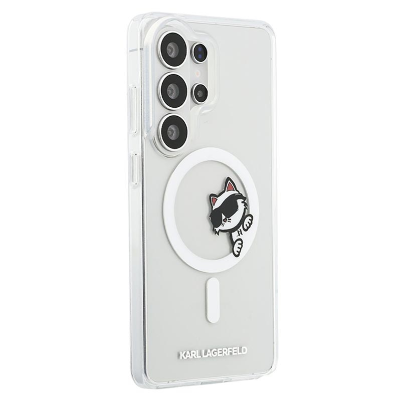 Show your personality with the Karl Lagerfeld IML Choupette Peekaboo Logo magnetic case for Samsung Galaxy S26 Ultra. This premium hybrid back cover combines fashion and protection, featuring the iconic Choupette Peekaboo motif and signature logo. Built from rigid PC and flexible TPU, it offers reliable everyday protection while maintaining a slim and comfortable feel in the hand.