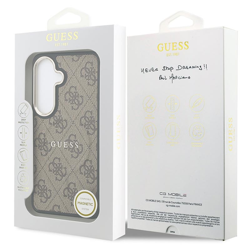 Upgrade your everyday look and protect your phone with the Guess 4G Gold Frame MagSafe case for Samsung Galaxy S26+. Designed to match both your style and your routine, this slim back cover combines a premium fashion finish with reliable daily protection. The lightweight polyurethane build feels comfortable in hand, while the grippy surface helps reduce slipping. With MagSafe support, you can keep using wireless charging and MagSafe accessories without removing the case.
