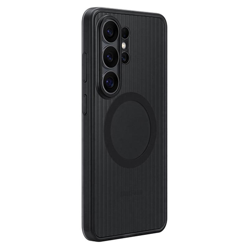 Built for everyday knocks and tougher moments, the Original Samsung Galaxy S26 Ultra Rugged Magnet Case delivers strong protection without giving up comfort. Its rugged construction is designed to absorb shock from drops and resist scratches and impact, with raised edges that help protect both the screen and camera when you set your phone down. Grooved sides improve grip, while a padded inner layer adds extra cushioning and a more comfortable feel in hand.