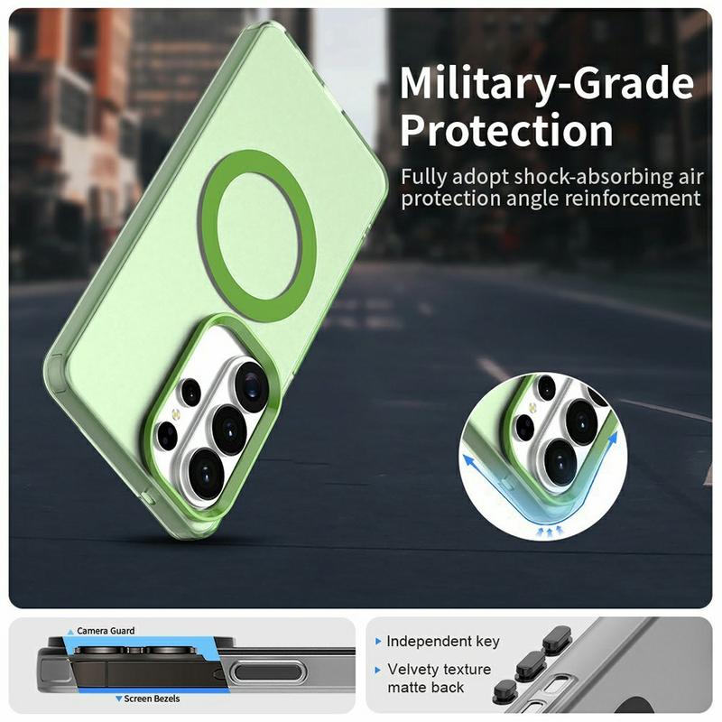 The UltraGuard Matte MagSafe Case offers a perfect balance of protection and sleek design for your Samsung Galaxy S26 Ultra. This slim, lightweight case is crafted from a durable blend of TPU and PC materials. Its matte translucent finish gives your Samsung Galaxy S26 Ultra a stylish look while maintaining easy access to MagSafe charging. With superior drop and scratch protection, it's an excellent choice for daily use.