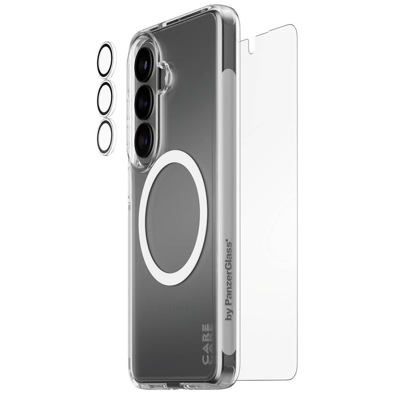 Give your Samsung Galaxy S26 complete protection in one go with the CARE by PanzerGlass 3-in-1 Explorer Bundle. This all-in-one set combines an Ultra-Wide Fit screen protector, transparent camera lens protection, and a tough transparent case, so your phone is covered from the front glass to the camera module and the back. Built for everyday city life and weekend adventures, it is designed to handle drops, scratches, and bumps while keeping your phone s original design visible.