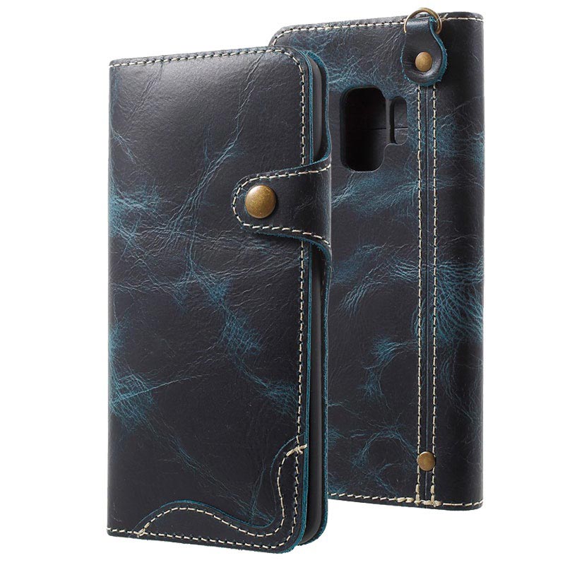 - Retro novčanik-futrola na preklop za Galaxy S9, napravljena od prave kože