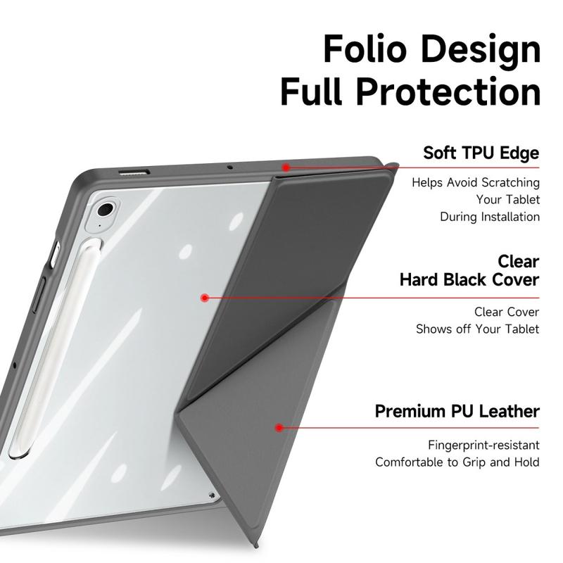 Ultra-Slim: The Slim, lightweight, and soft-touch front exterior is made of premium PU Leather, the scratch-free interior offers great protection, and the TPU frame + PC back makes your tablet more stable