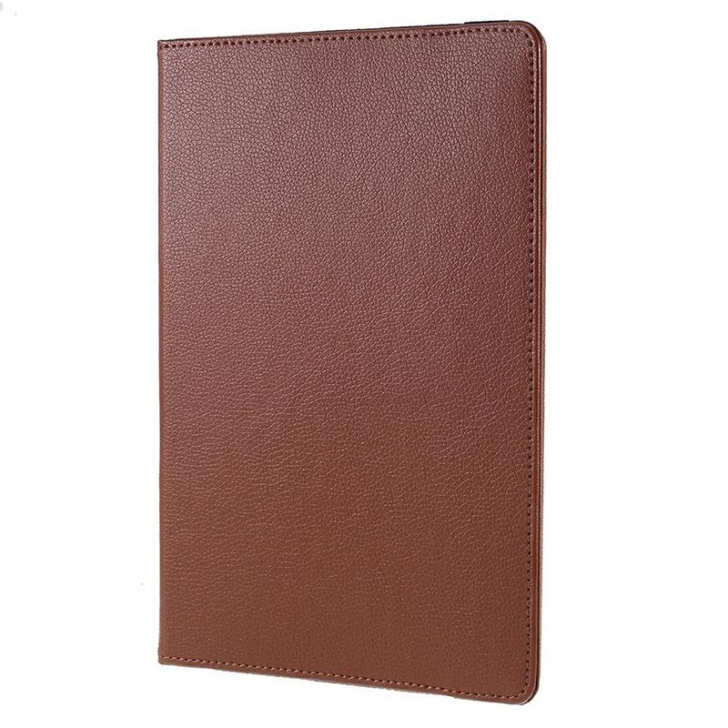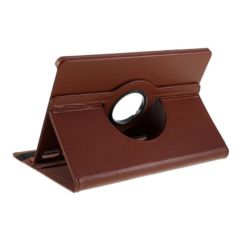 Protect and enhance your Samsung Galaxy Tab S10 FE+ with this slim rotating-stand case. A tough PC shell teams with a soft, lychee-texture PU leather exterior to shield your Samsung Galaxy Tab S10 FE+ from bumps and scratches, while the 360 swivel lets you switch effortlessly between portrait e-reading and landscape streaming. A soft inner lining guards the display, and an elastic band keeps the cover securely closed in your bag.