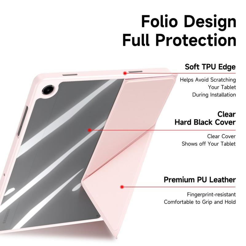 Ultra-Slim: The Slim, lightweight, and soft-touch front exterior is made of premium PU Leather, the scratch-free interior offers great protection, and the TPU frame + PC back makes your tablet more stable