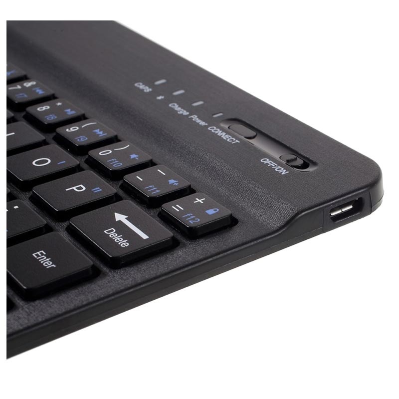 Samsung Galaxy Tab A7 Lite flip futrola sa Bluetooth tastaturom donosi praktičnost i kompletnu zaštitu za Vaš tablet. Kombinacija flip futrole i funkcije postolja sa odvojivom Bluetooth tastaturom je savršena za surfovanje internetom ili gledanje multimedijalnih sadržaja na Vašem Samsung Galaxy Tab A7 Lite tabletu. Dovoljno je da Vaš Samsung Galaxy Tab A7 Lite namestite u odgovarajuću poziciju i uživanje može da počne.