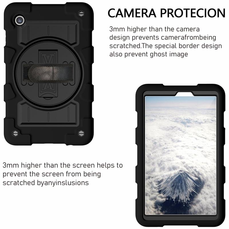 Ova izdržljiva hybrid maska štiti Vaš Samsung Galaxy Tab A9 od uobičajenih oštećenja kao i udaraca i padova. Integrisano 360° rotaciono postolje omogućuje komforno korišćenje uređaja u vodoravnom kao i horizontalnom položaju. Uz to, maska nudi i traku za rame i šaku za bezbedno nošenje Vašeg Samsung Galaxy Tab A9 uređaja.