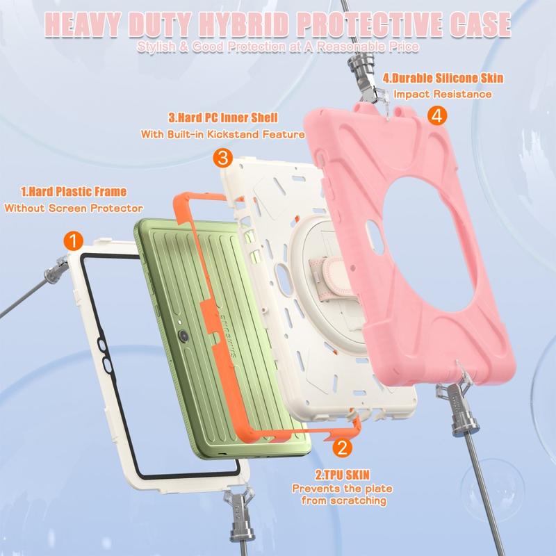 Zaštitite svoj Samsung Galaxy Tab Active5 Pro od svakodnevnih oštećenja sa ovom fantastičnom Heavy Duty 360 futrolom! Ovo moderno kućište sa unutrašnjom neklizajućom postavom i integrisanim rotirajućim postoljem omogućava gledanje pejzaža ili portreta bez upotrebe ruku. Okvir i unutrašnja školjka su napravljeni od plastike, a spoljna površina od mekog silikona. Ova kombinacija pruža odličnu zaštitu od padova ili oštećenja. Popularno i zaštitno, ovo hibridno kućište je savršena maska za vaš Samsung Galaxy Tab Active5 Pro.