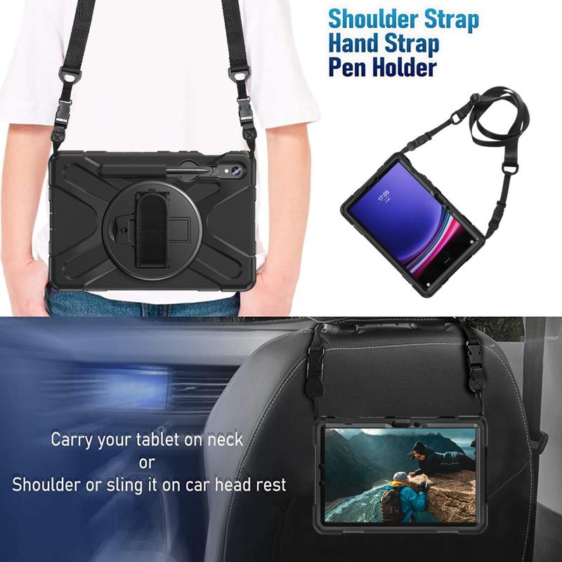 - Priložena traka za rame olakšava nošenje Vašeg Samsung Galaxy Tab S10 FE, Galaxy Tab S9 FE, Galaxy Tab S9, Galaxy Tab S8, Galaxy Tab S7 uređaja i čini ga bezbednijim