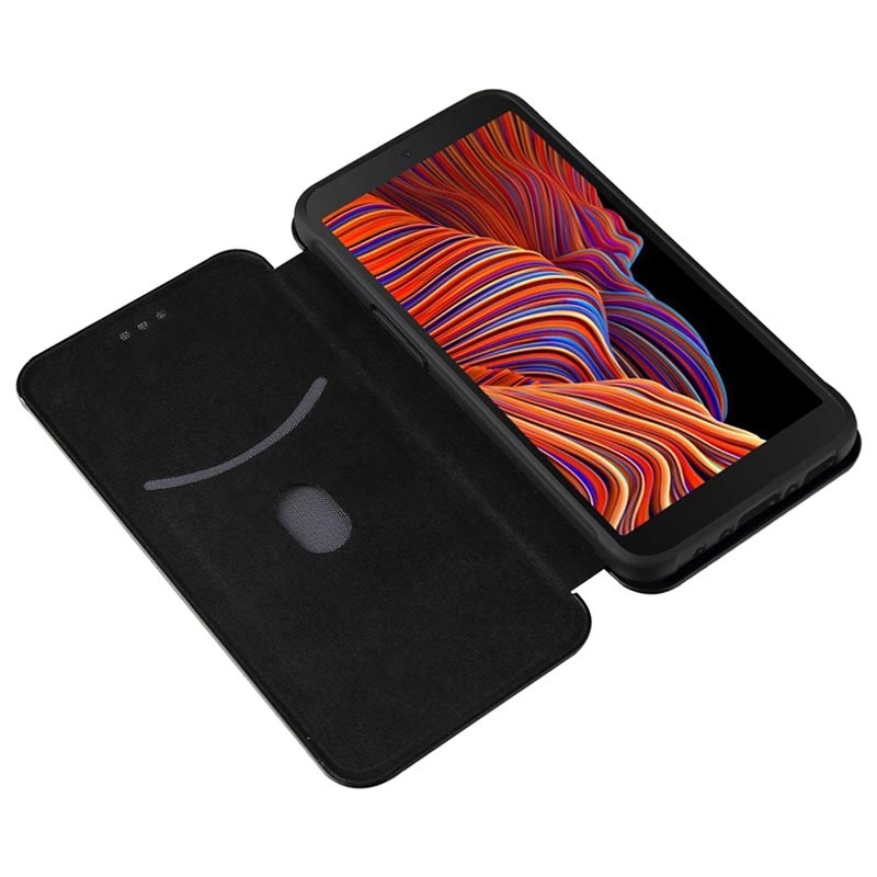 Zaštitite svoj Samsung Galaxy Xcover 5 unutar ove futrole na preklop sa teksturom karbonskih vlakana.