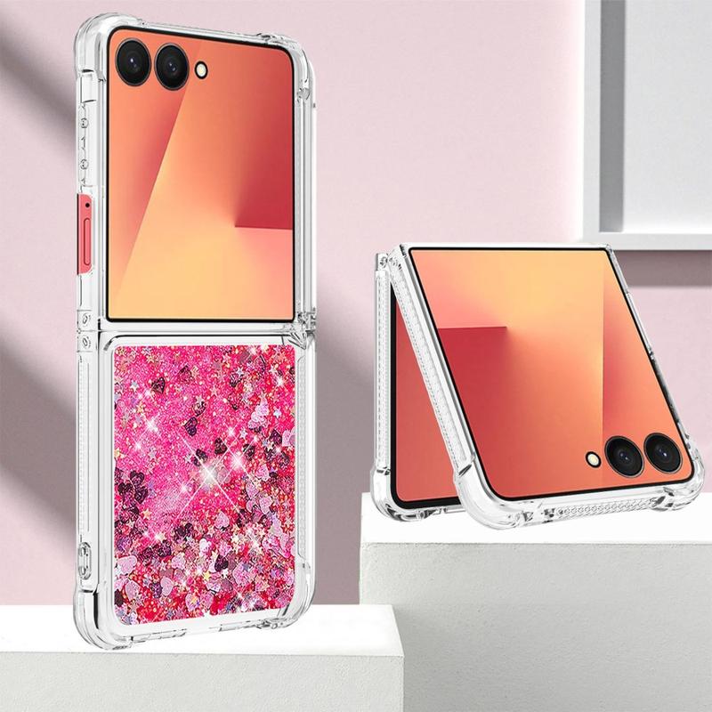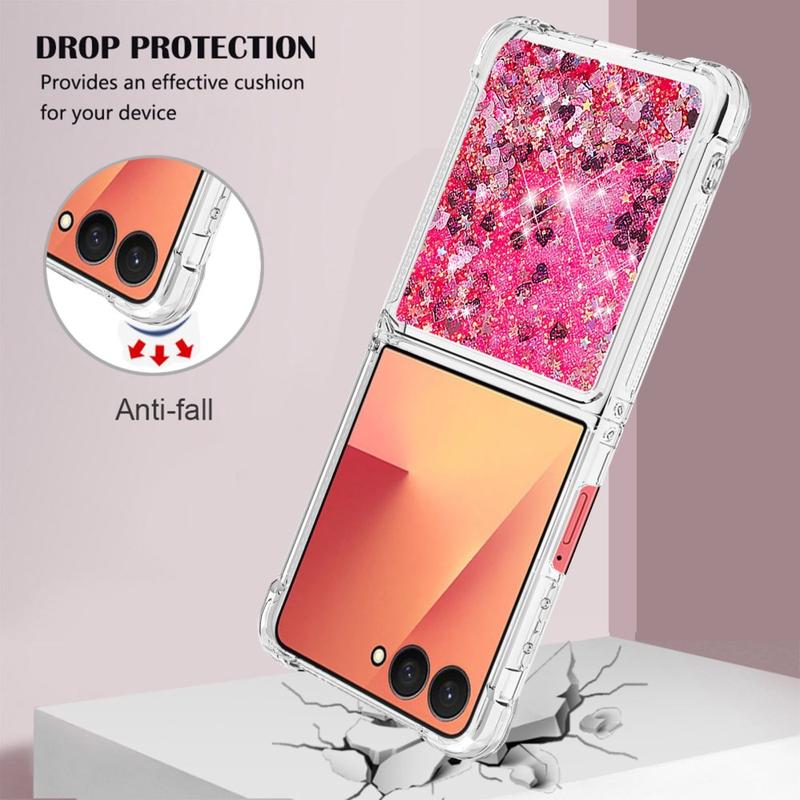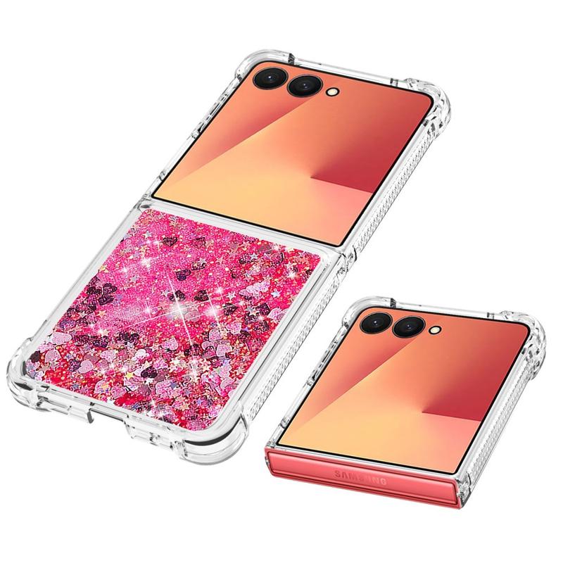 Turn every flip into a sparkle show. This ultra-slim TPU case for the Samsung Galaxy Z Flip7 combines fluid glitter hearts with shock-absorbing protection, wrapping your foldable in a fun, eye-catching layer that keeps scratches, drops and everyday scuffs at bay. Precise cut-outs leave hinges, speakers and USB-C ports fully accessible, while raised edges shield the camera lenses and outer display when you set the phone down.