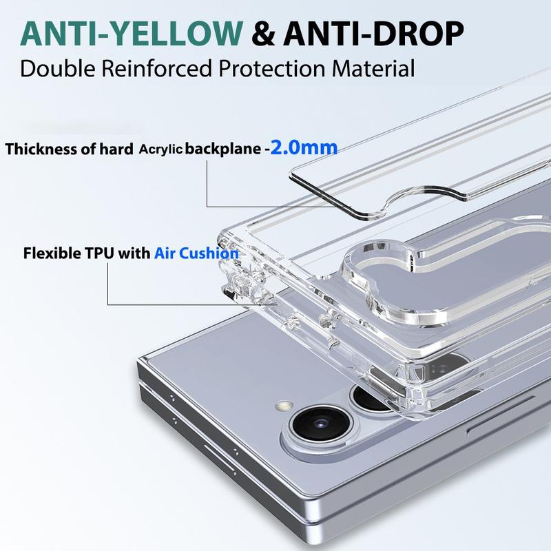 Ovaj dodatak predstavlja kombinaciju akrila i TPU materijala koji će sačuvati Vaš telefon u besprekornom stanju. Uz to, ojačane ivice apsorbuju udarce i eliminišu štetu prilikom padova, dok providni dizajn pokazuje lepote Vašeg Samsung Galaxy Z Fold6 telefona u punom sjaju.