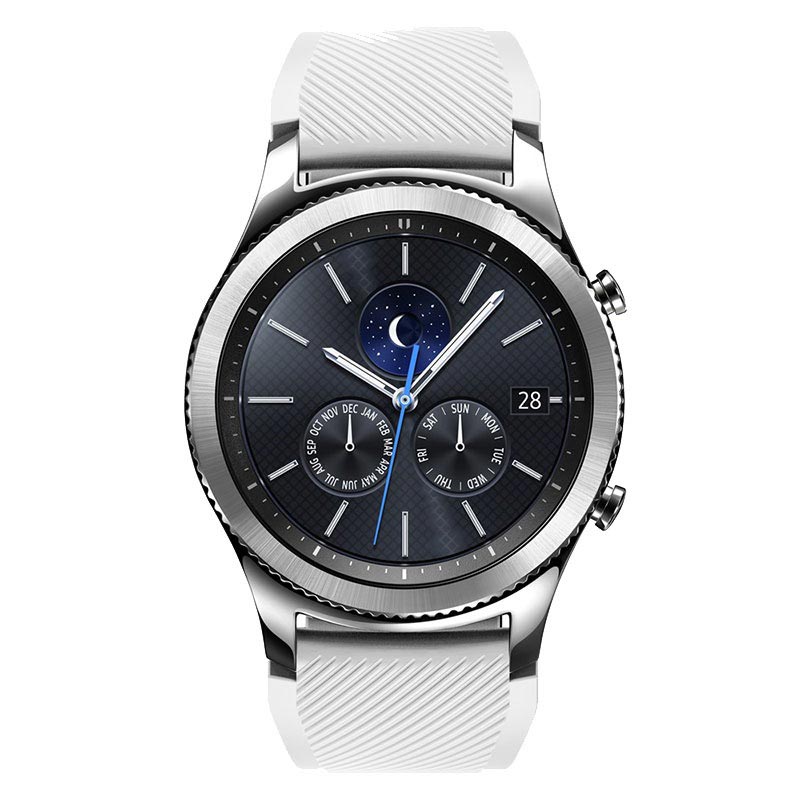 Idealna za ljude koji se bave sportom, silikonska narukvica za Samsung Gear S3 je fleksibilna, lagana i udobna za nošenje oko zgloba. Izdržljiva narukvica otporna na habanje ima klasičnu metalnu kopču na poleđini i teksturiran površinski sloj.