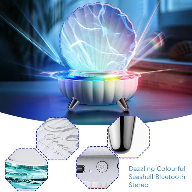 Seashell-Shaped Bluetooth Speaker with RGB Ambient Lighting - 5W, 1200mAh, USB-C