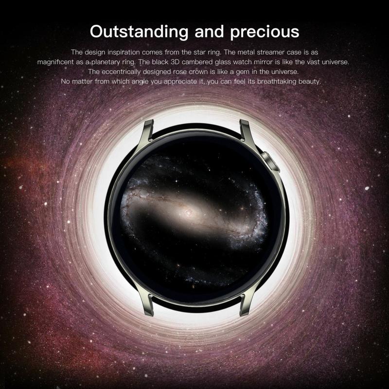 - 1.43" AMOLED display with 466 × 466 resolution and 3D curved glass