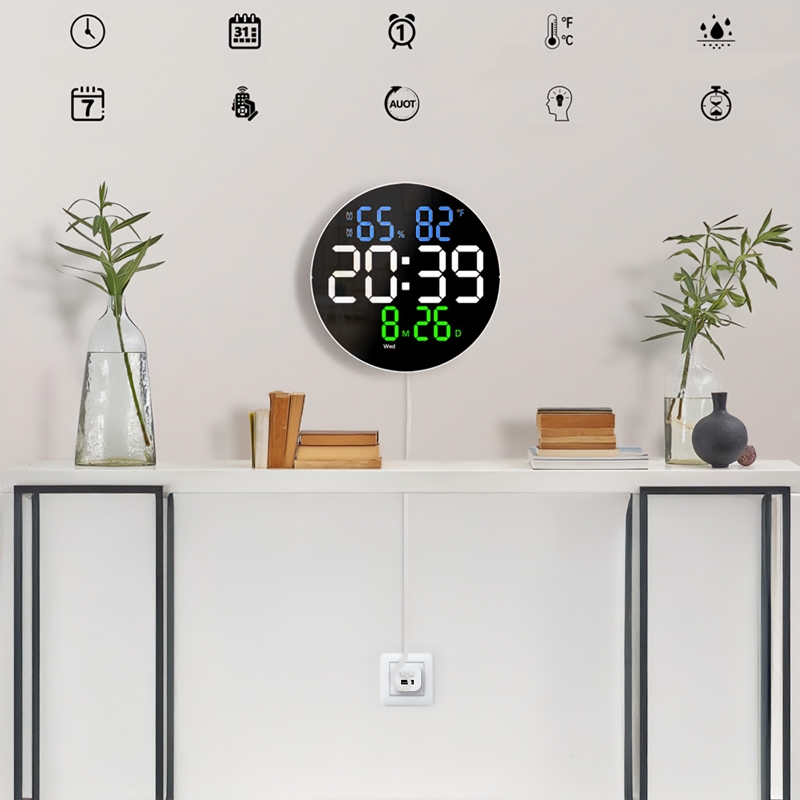 Upgrade any room with a wall clock that does far more than tell the time. The LumiTemp 6672 combines a noiseless digital movement, vivid 360° ambient lighting and live temperature-humidity read-outs in one sleek 25.5 x 25.5 x 3 cm ABS frame. Ten-step auto-dimming keeps the large digits comfortable on sleepy eyes, while dual power options (DC 5V or 2x AA batteries) ensure the display never drops out during black-outs or trips.
