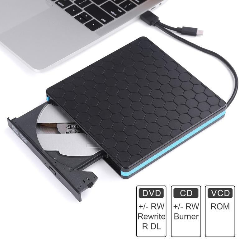 Slim External DVD Drive - Rewriter, Writer, Reader - USB-C / USB-A