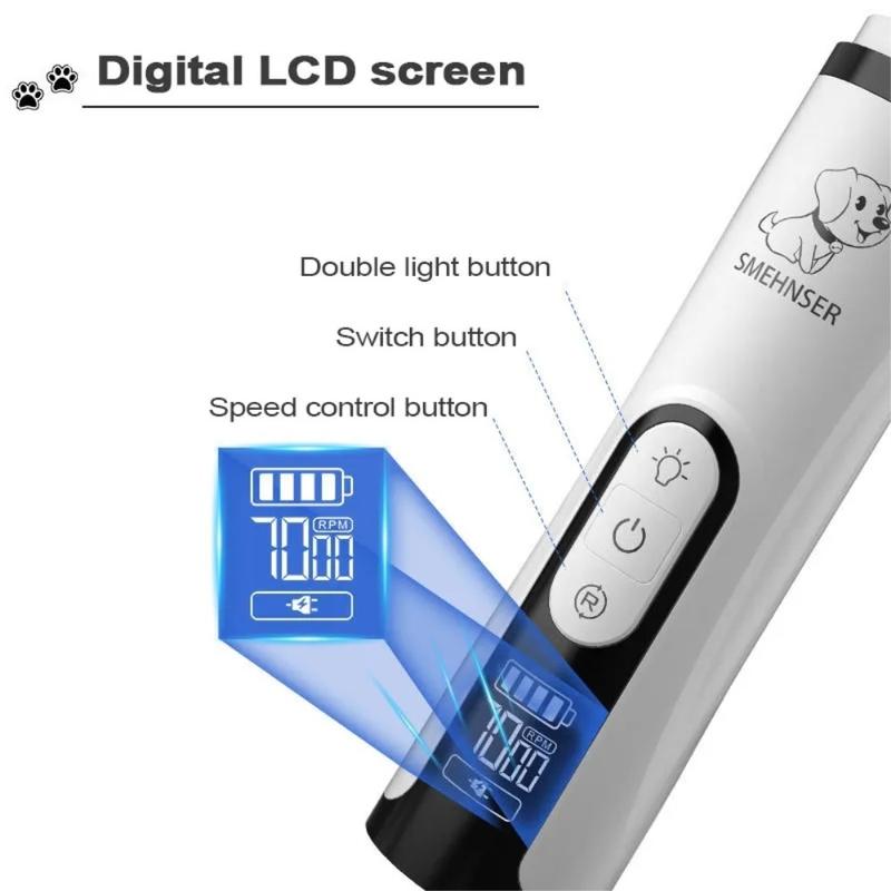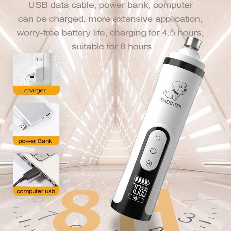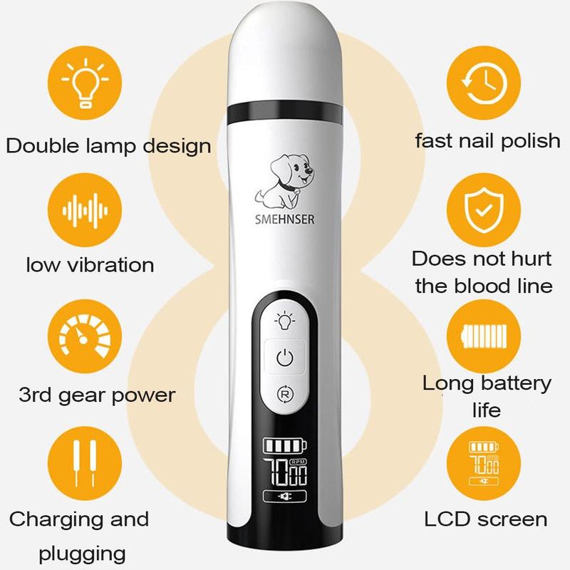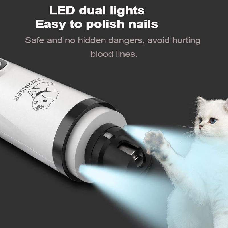 Smehnser M5 Electric Pet Nail Grinder with LED Light - USB Rechargeable Nail Trimmer for Cats and Dogs