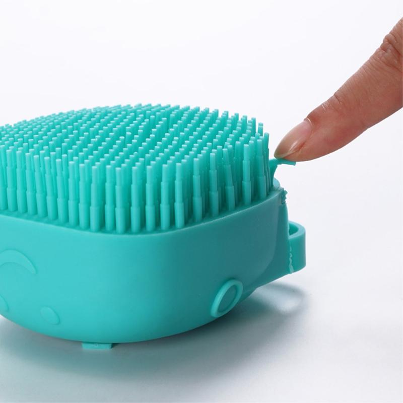 • Soft Dog and Cat Bath Brush – Rubber Pet Grooming Brush with Shampoo Dispenser