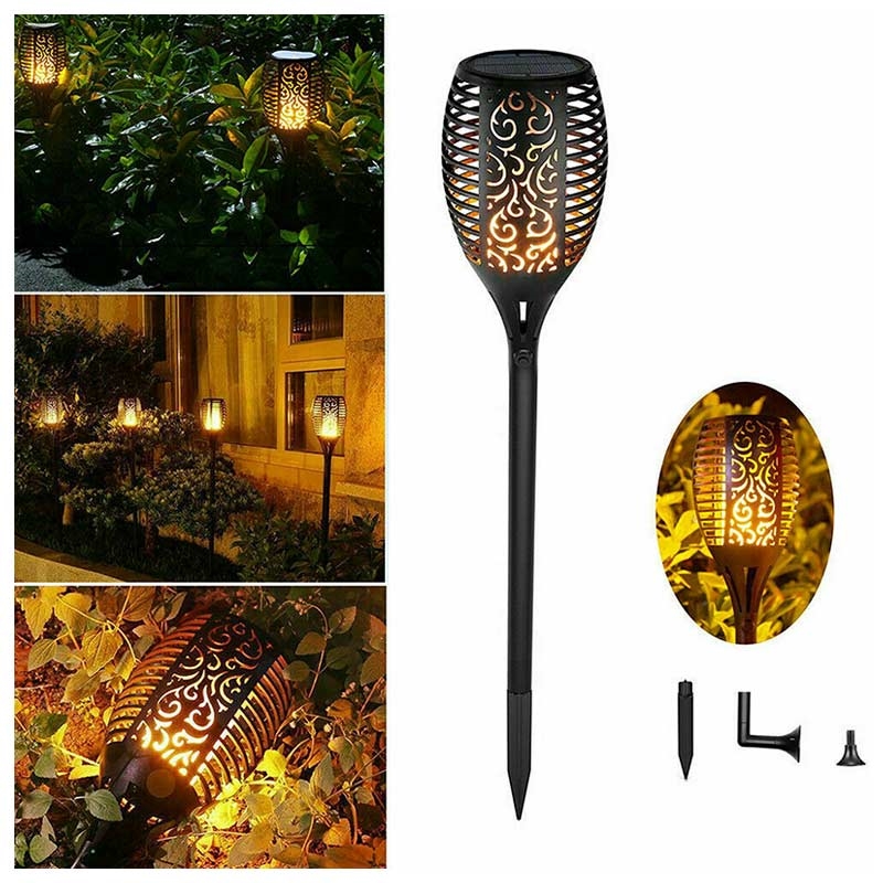 These Solar Powered Stake Lights bring warm, flickering flame effects to your garden, pathway, patio or backyard. With 96 LEDs, solar charging technology and waterproof construction, they automatically illuminate at night to create an inviting and decorative outdoor atmosphere.