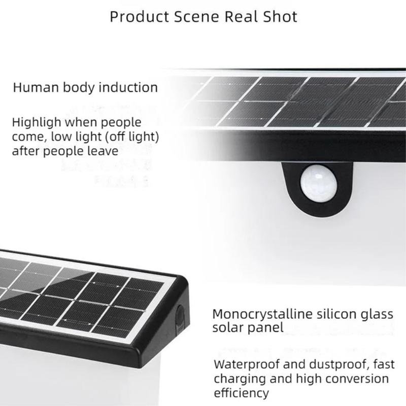 - Hands-free automation - charges by day, lights by night; motion sensor triggers instantly when someone passes.