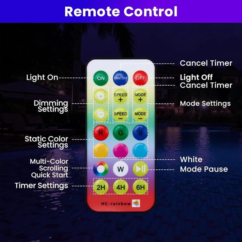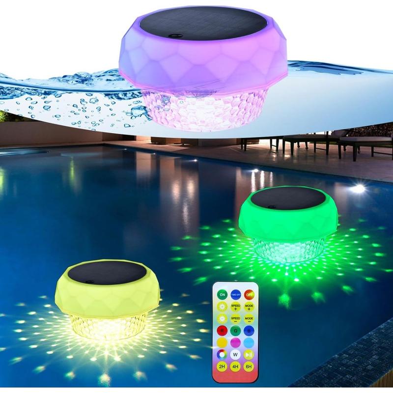 Solar-Powered Floating Pool Light with Disinfection Box and RGB LEDs - Remote-Controlled Timer Lamp, 170 × 100 mm IPX7