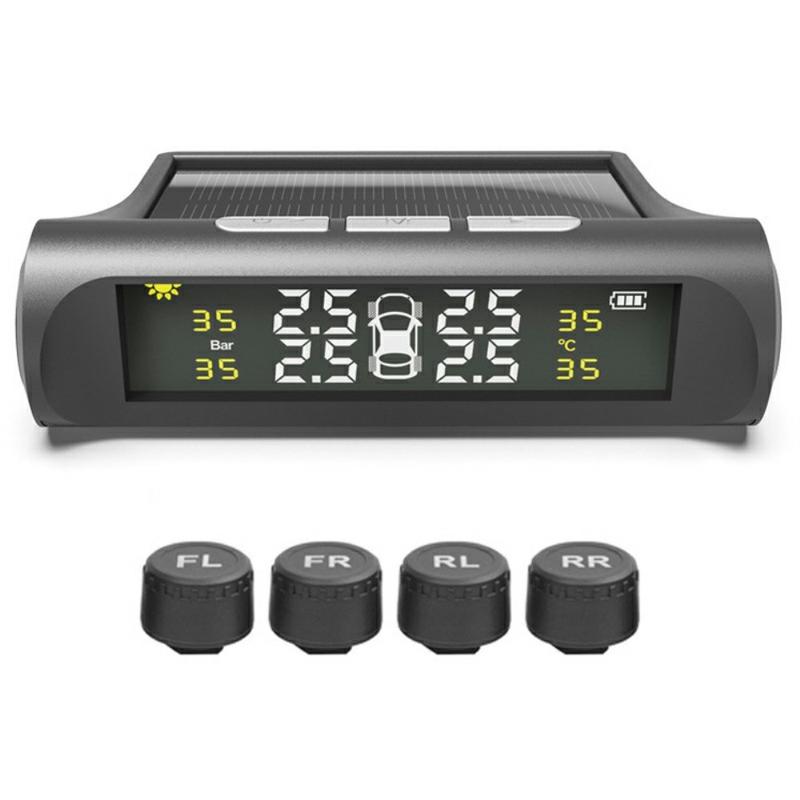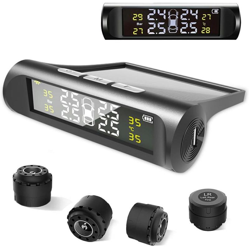 Solar-Powered Wireless Tire Pressure Monitor System with LCD Display and 4 External Sensors