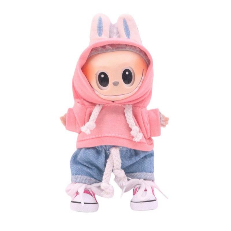 Solid-Color Hoodie for 17cm Labubu Mini Figure - Soft Cotton-Blend Hooded Top, Easy-Dress Design