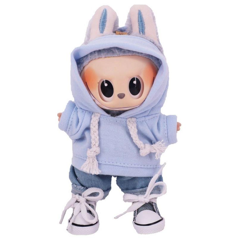 Solid-Color Hoodie for 17cm Labubu Mini Figure - Soft Cotton-Blend Hooded Top, Easy-Dress Design