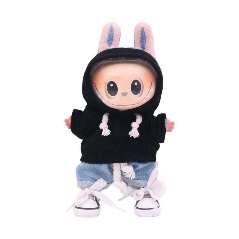 Solid-Color Hoodie for 17cm Labubu Mini Figure - Soft Cotton-Blend Hooded Top, Easy-Dress Design