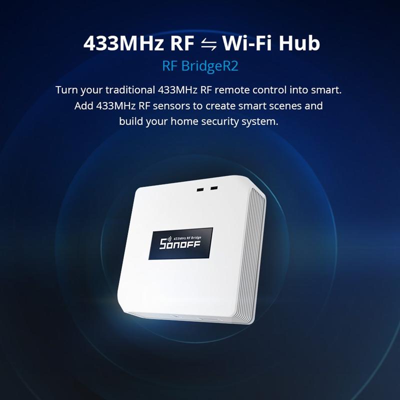 Sonoff RF BridgeR2 433MHz RF to WiFi Smart Hub - eWeLink Control, 2.4 GHz, Home Security and Automation