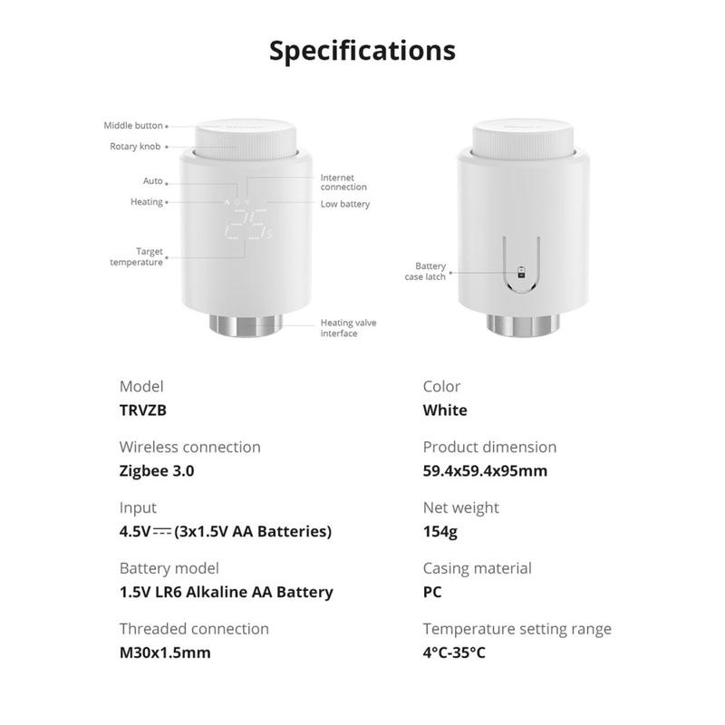 Smart Control: The SONOFF Zigbee Thermostatic Radiator Valve offers comprehensive smart features including APP remote control, voice commands, scheduling, and group control for convenient and efficient heating management