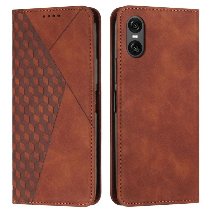 Rhombus Pattern Wallet Case with Magnetic Closure for Sony Xperia 10 VI