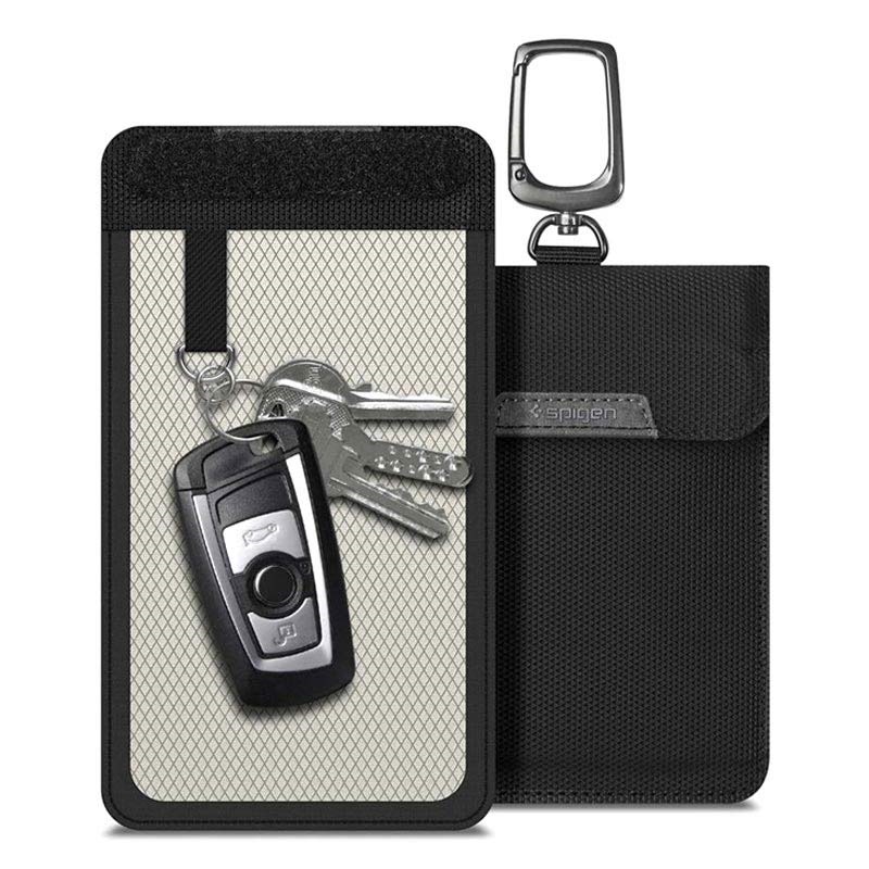 Spigen futrola ima profesionalni Faraday cage zaštitini sistem za vlasnike automobila koji mogu da se otvaraju bez ključa. Zahvaljujući svom jedinstvenom dizajnu, ova Spigen futrola može da blokira transmisiju radio talasa između ključeva i kola i tako spreči krađu. Uz to, dva sloja nanofiber vlakana blokiraju vezu između ključeva i kola. Najzad, karabiner sa rotacijom od 360 stepeni dozvoljava kačenje ove Spigen futrole na ranac, tašnu i druge predmete.