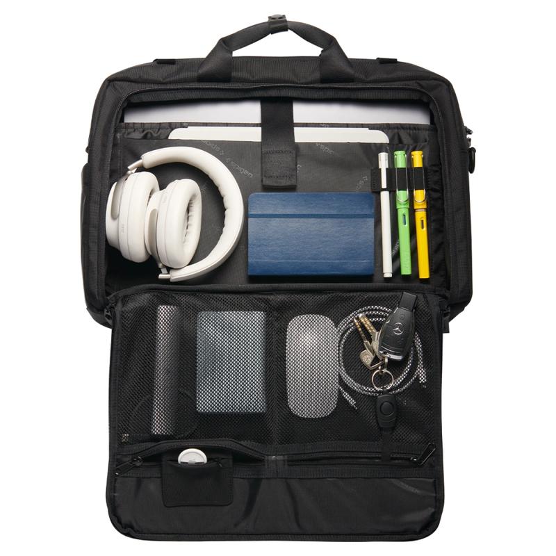 - Slide a 16-inch MacBook Pro and charger into the main sleeve, stow a notebook in the rear pocket, and still have room for a light jacket under the front buckle for daily commuting.