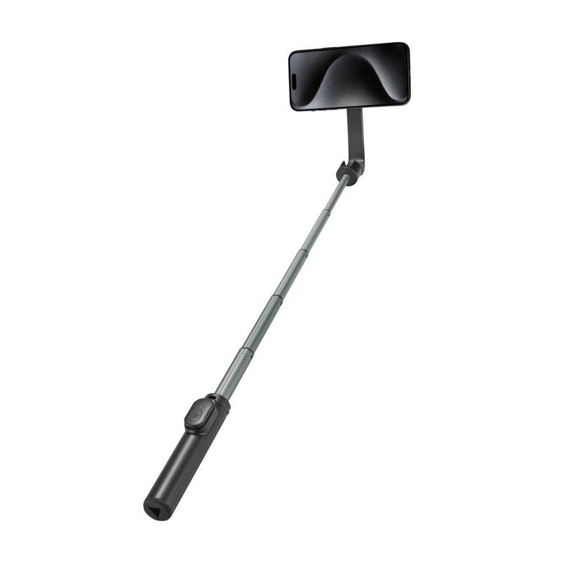 The Spigen S570W MagSafe Bluetooth Selfie Stick Tripod is designed for photography and filming enthusiasts, especially iPhone owners equipped with MagSafe technology. It features a unique design and solid construction, making it a reliable and long-lasting tool. The built-in Bluetooth module allows for wireless connection to a smartphone, and the telescopic tube and tripod legs ensure stability and versatility for capturing a wide range of angles.