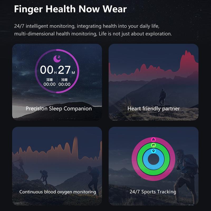 - Comprehensive Health Tracking – Tracks heart rate (Tianyi 3602 sensor), blood oxygen (SpO2), and sleep patterns.