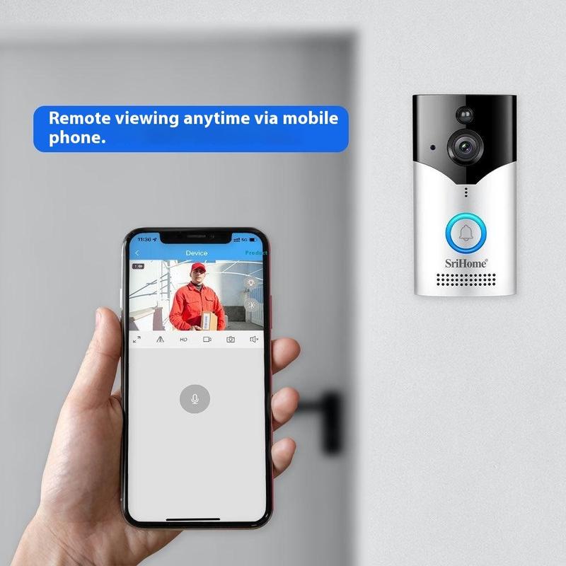 The SRIHOME DH002 Smart Video Doorbell combines high-definition security with convenient smart features, making it the perfect upgrade for your home. Featuring a 4MP HD camera with 1440P resolution, it delivers crystal-clear video surveillance both day and night. The infrared night vision provides visibility up to 20 meters in low-light conditions, while the 2.8mm wide-angle lens with 150° coverage ensures comprehensive monitoring. With two-way audio, you can interact with visitors in real time, and WiFi connectivity allows you to view and control your doorbell remotely via the mobile app on Android or iOS. Built with an IP65 weather-resistant body, it’s suitable for both indoor and outdoor use.
