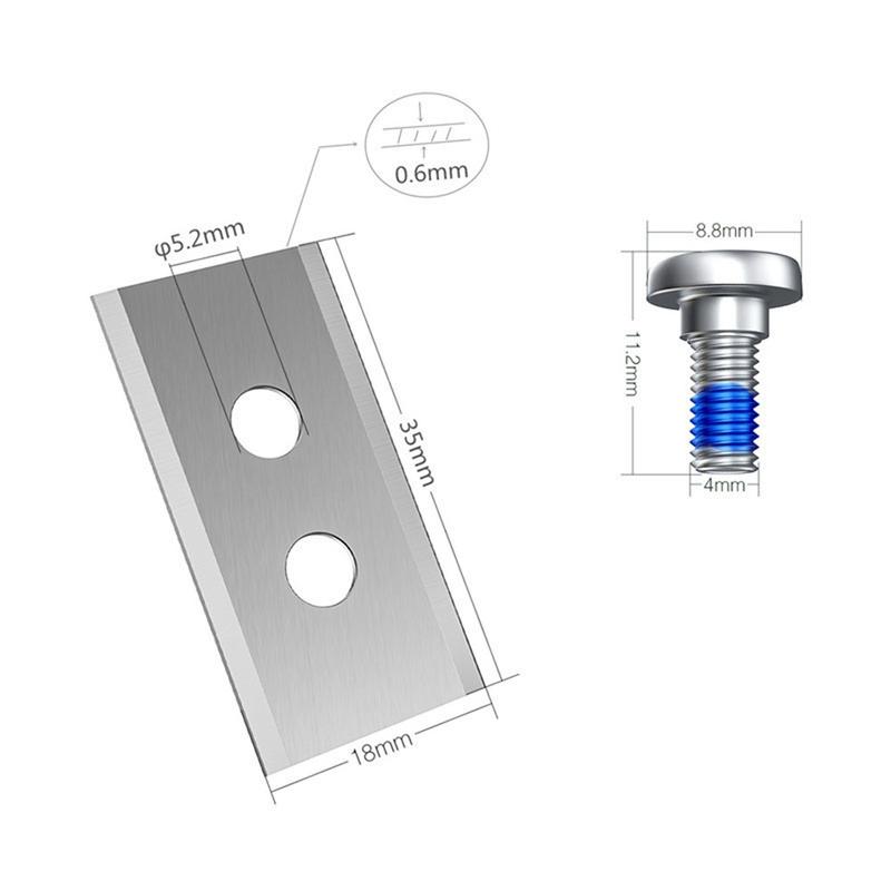With precise 35 x 18 x 0.75mm dimensions and a dual-hole mounting design, the blades are made for a secure fit and stable operation on compatible robotic mowers. The set also includes matching screws with blue thread-locking compound to help prevent loosening during use, making maintenance easier and more dependable.
