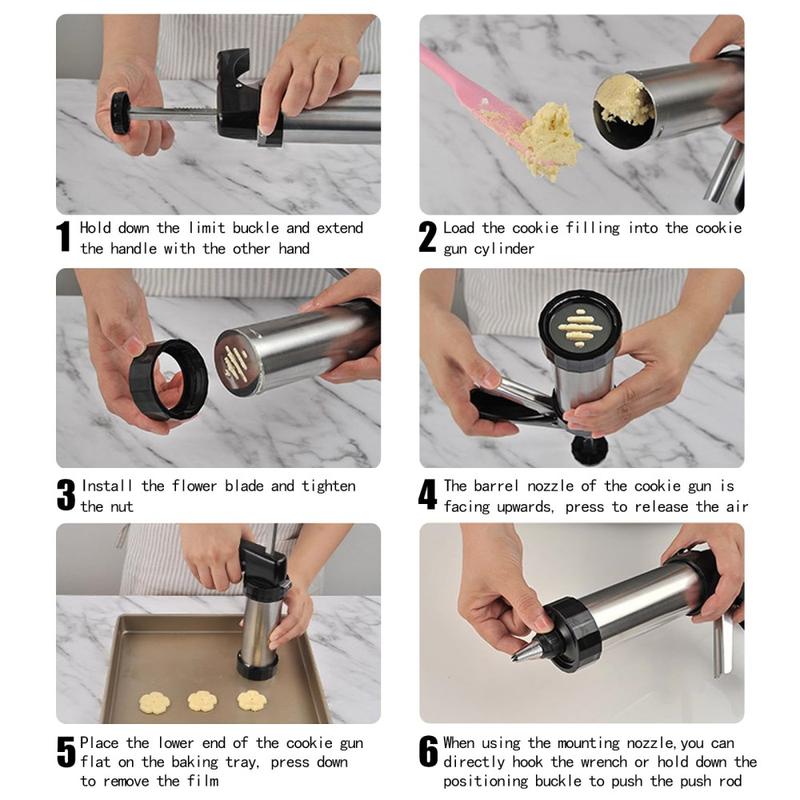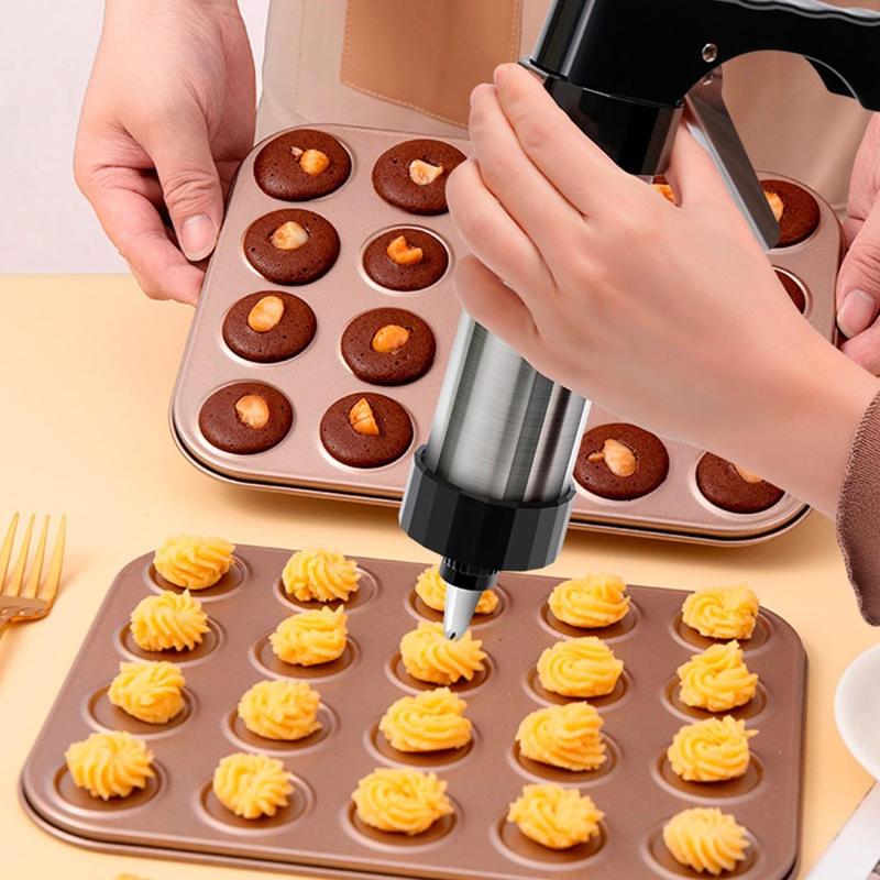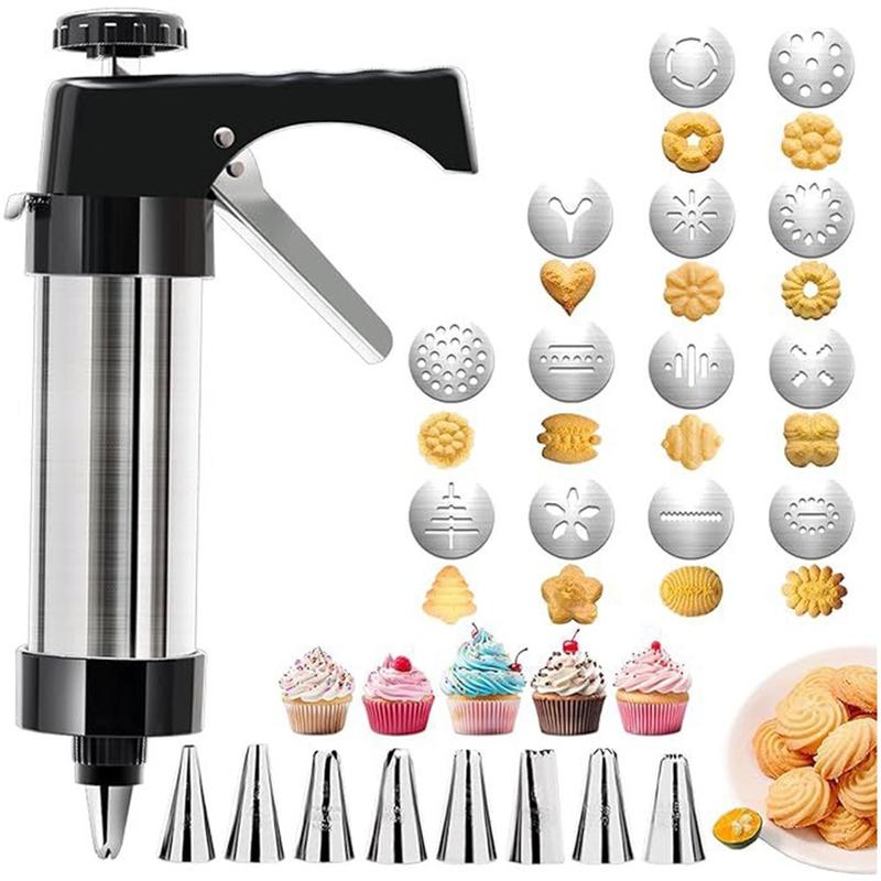 Cookie presses help create uniform shapes, which allows cookies to bake more evenly. Stainless steel baking tools are popular because they resist corrosion and maintain hygiene over time. Interchangeable discs and nozzles make one press suitable for many different baking styles, from classic cookies to decorative desserts.