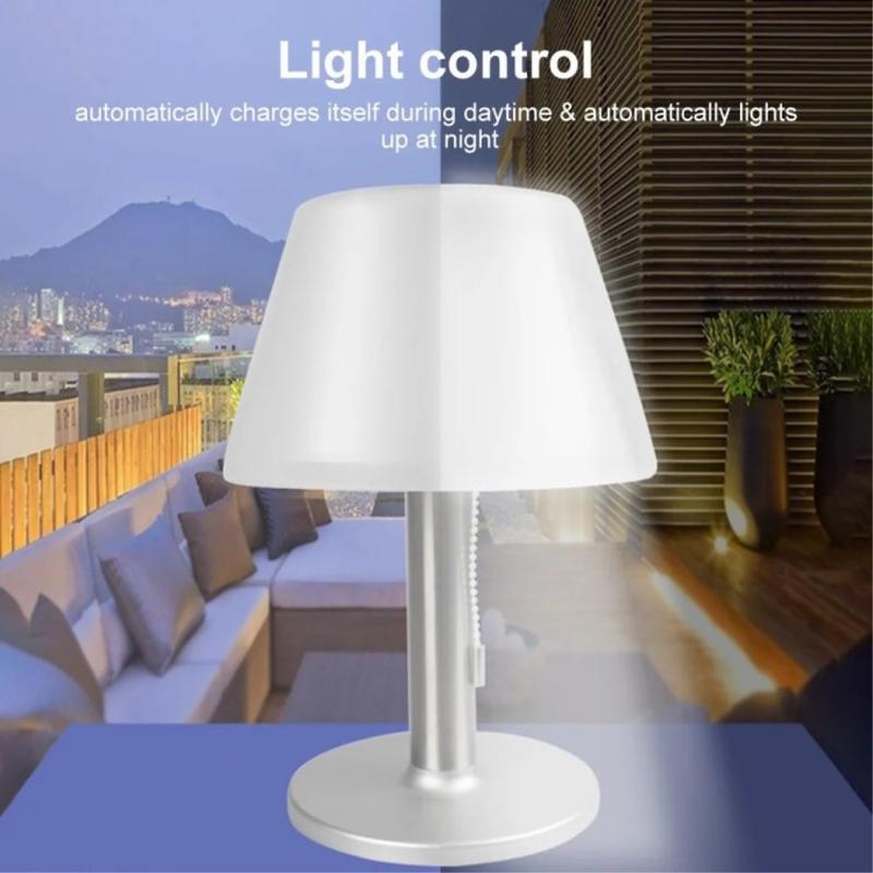- Alfresco dining—set the lamp on an outdoor table for warm, off-grid light.