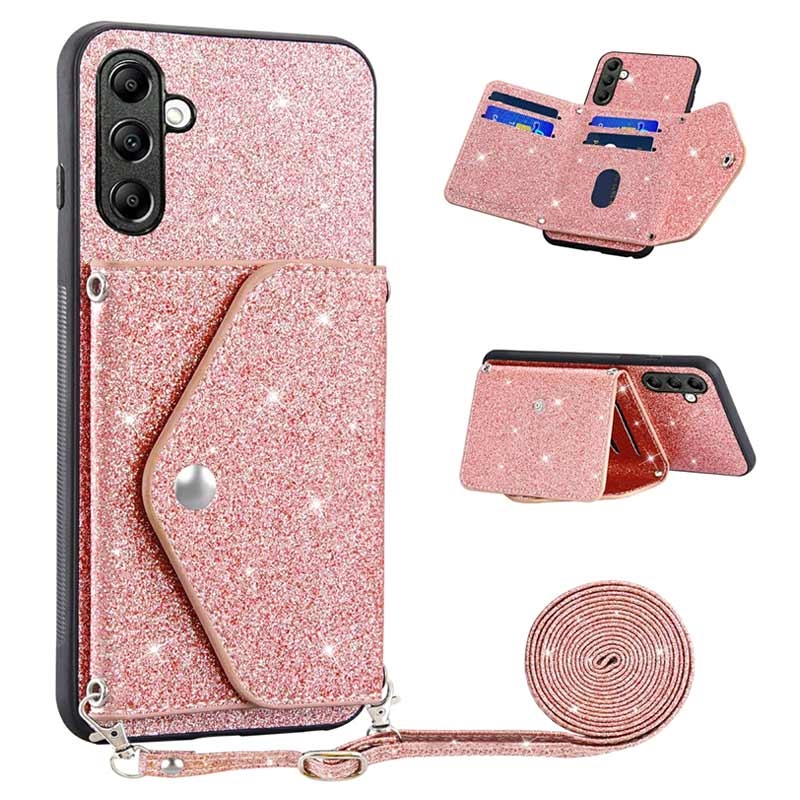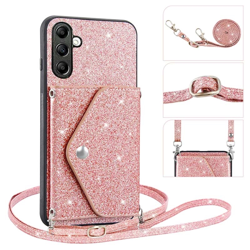 Futrola vrhunskog kvaliteta iz serije Stardust je pravi izbor za zaštitu vašeg Samsung Galaxy A14 od bilo kakvog potencijalnog oštećenja. Ima držač kartica na poleđini sa dugmetom koji je odličan za čuvanje vaših najbitnijih kartica. Sjajna svetlucava površina dodaje dašak glamura vašem telefonu. Pored toga, maska dolazi sa podesivim remenom od 150cm, koji vam omogućava da nosite svoj Samsung Galaxy A14 sa sobom gde god da krenete.